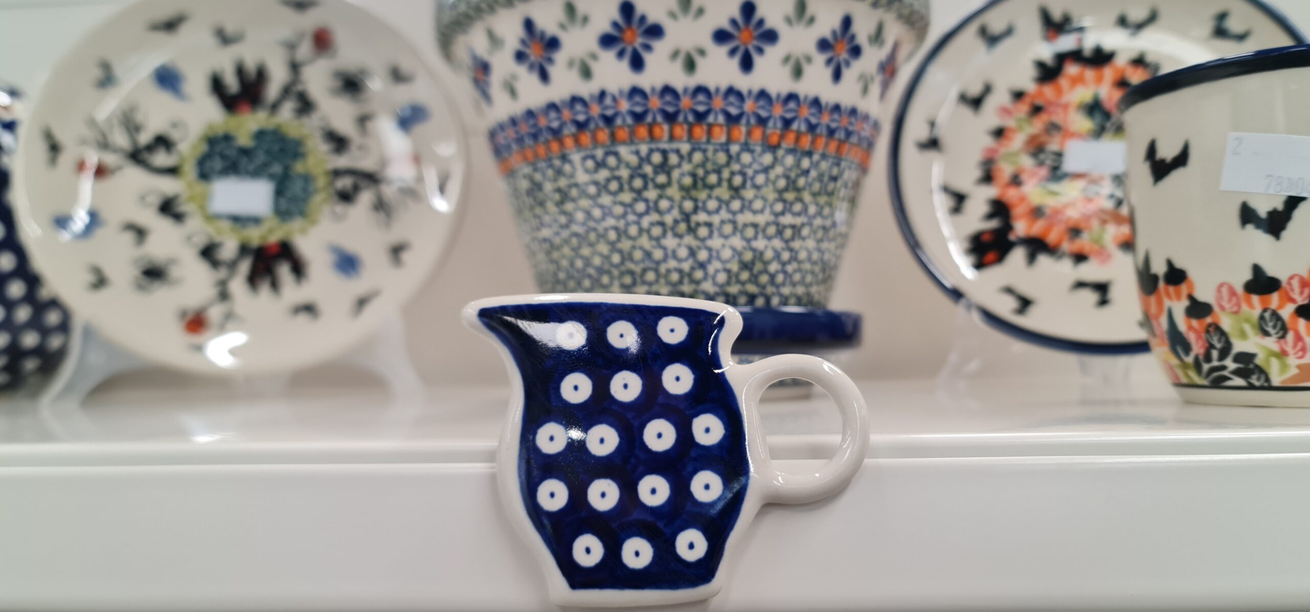 We Wrocławiu można obejrzeć potężna kolekcję wyrobów ceramicznych z Bolesławca, sklep przy ul. Kiełbaśniczej oferuje całą gamę produktów – w tym cześć kolekcji to te najstarsze historycznie wzornictwo – okrągłe stempelki na białym lub granatowym tle… od tego sie wszystko zaczęło! Już w XVIII wieku… Początkowo były to wazy, dzbany i kufle w brązowej kolorystyce. Glinę kamionkową czerpano głównie z okolic Bolesławca.