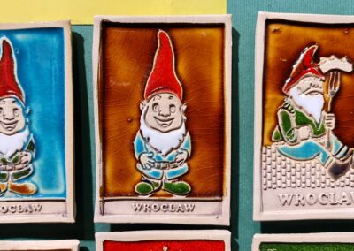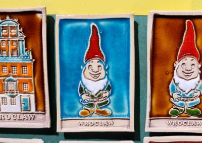 Np. magnes z Wrocławia, są takie, których wiele na rynku, robione hurtowo w ChRL i dostarczane w kontenerach, są tanie i najczęściej bardzo kiczowate, krasnalki z pucułowatymi buziami, grafiki zabytków Wrocławia zrobione przez AI, gipsowe odlewy malowane maszynowo… Jednak kiedy się dobrze przyjrzeć – znajdziemy i te wyjątkowe, oryginalne, gustowne. Niestety, to wymaga czasu i determinacji! Są nieco droższe od tych chińskich – ale z pewnością bedą prawdziwą pamiątką – nie substytutem!