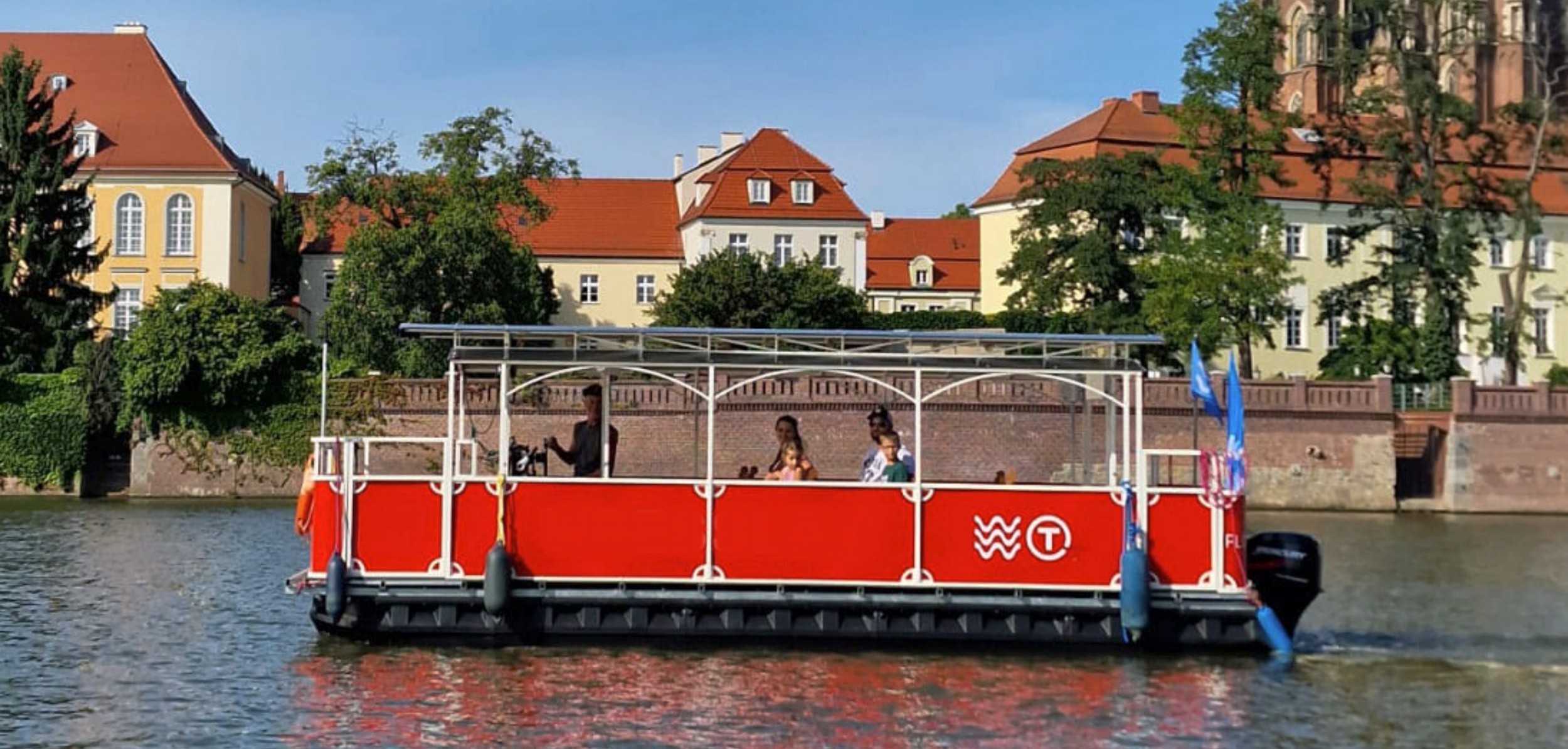 Uwagi:Kursuje od 8 osób od marca do listopada. Pokład zadaszony, dwa rządy drewnianych ławeczek. Przepiękna trasa widokowa po Starym Mieście! Rejsy nocne po Wrocławiu!