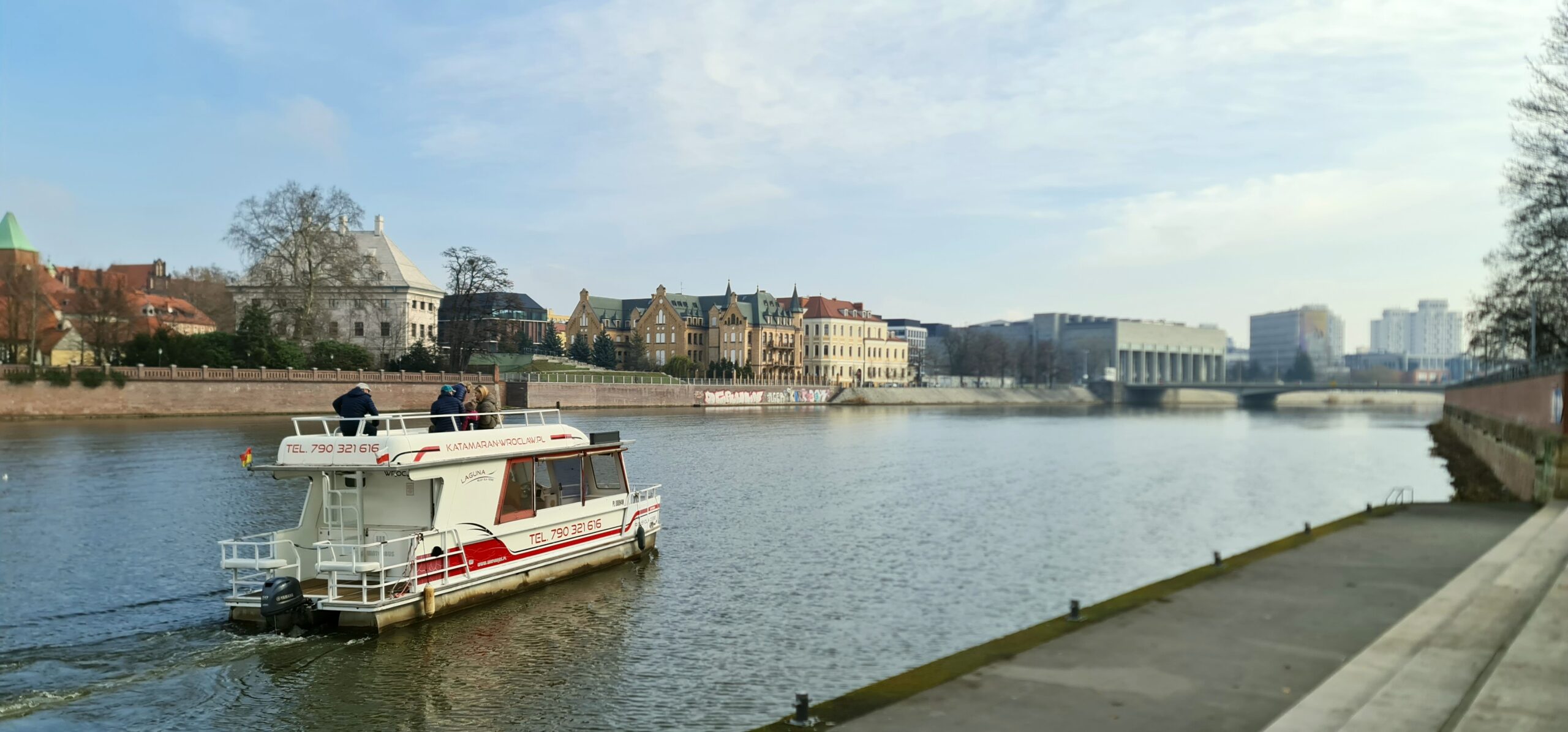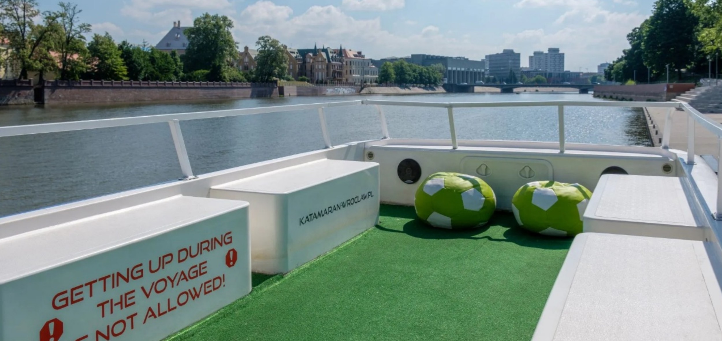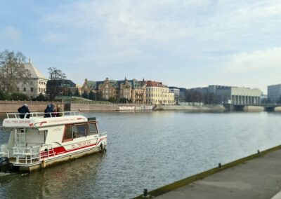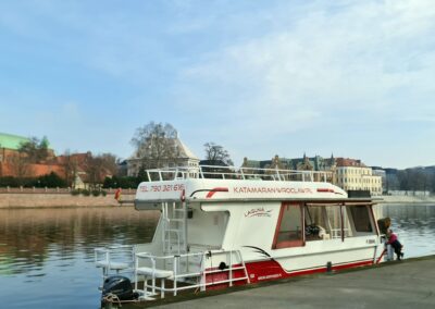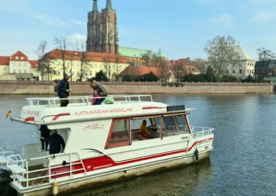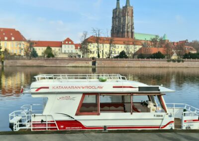 - Rejs katamaranem z przewodnikiem (1 h) Ostrów Tumski i Katedra, Muzeum Narodowe, Most Pokoju, Most Grunwaldzki, Zabytkowa Wieża Ciśnień, Most Tumski (Most Zakochanych), Wyspa Słodowa, Uniwersytet Wrocławski, Mosty Uniwersyteckie, Marina – Port Rzeczny, Powrót na przystań