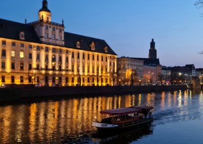 „Wieczorny rejs i spacer po Starówce” – godzinny rejs dużą Gondolą po Odrze połączony ze spacerem po wrocławskiej Starówce. Najpiękniejsze zakątki Starego Miasta – na zakończenie spaceru – romantyczny rejs kanałami Odry: Ostrów Tumski, Most Grunwaldzki, Uniwersytet Wrocławski, Mosty Uniwersyteckie Marina. Zapraszamy na rejsy po Wrocławiu od marca do grudnia! Na wycieczkę zapraszają przewodnicy po Wrocławiu i żegluga pasażerska Wrocław.