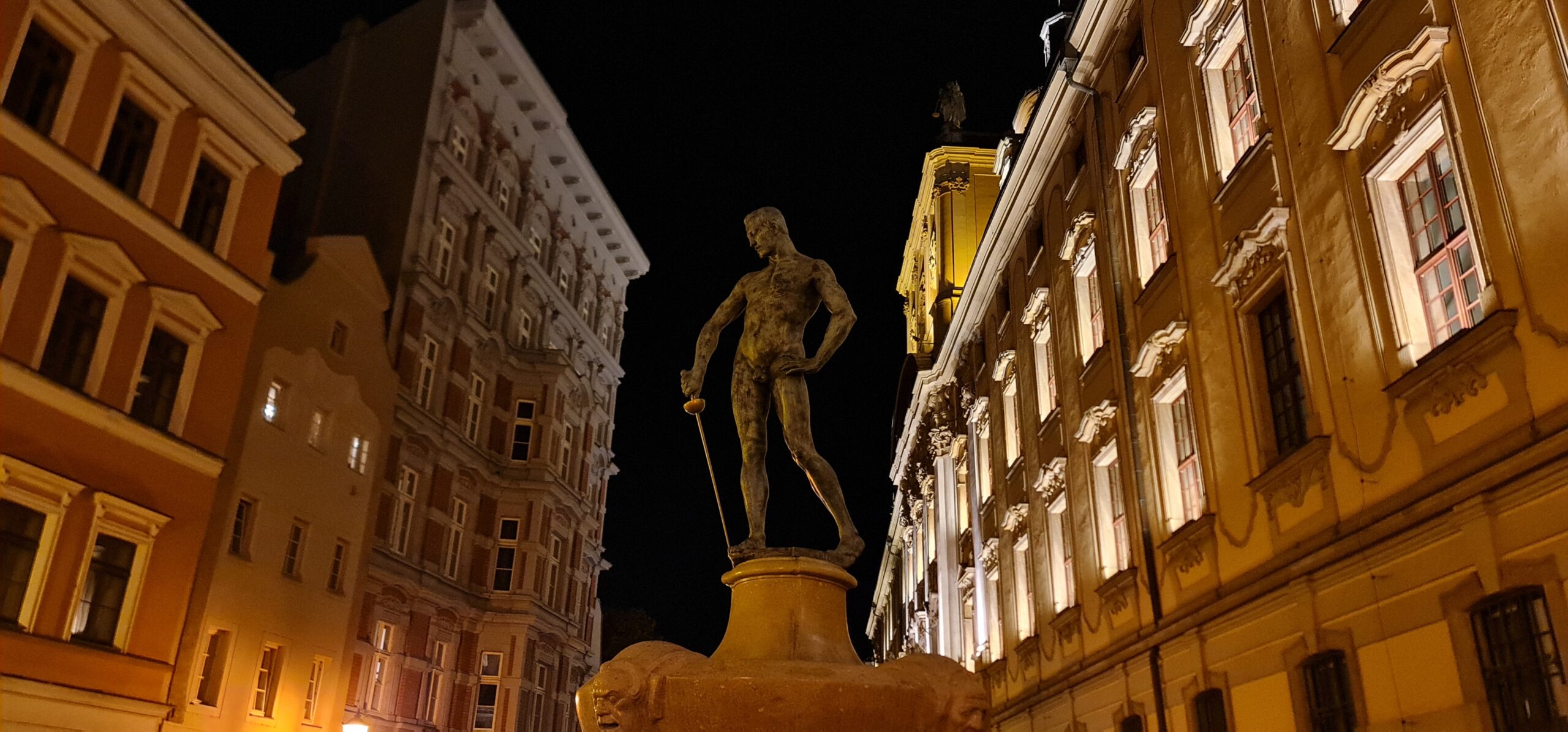 Pomnik nagiego szermierza, historia wrocławskich studentów - Zakład Narodowy im. Ossolińskich. Przejście przez ogród barokowy